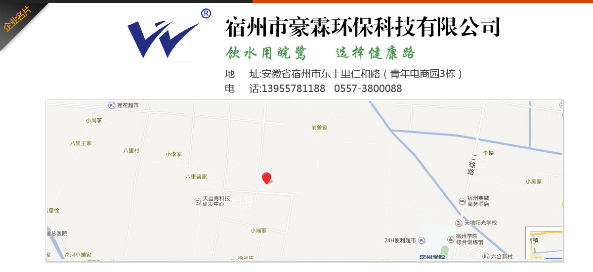 - 宿州市豪霖環保科技有限公司專業致力于水處理產品和系統水處理工程,集產品的開發與銷售、工程配套與安裝、技術咨詢與服務于一體的新型環保企業。主營產品:家用、商用純水機系列,能量活水機系列,家用、中央用凈水器系列,管線機,泵、膜系列,各種零配件、水處理耗材等配套產品系列,循環冷卻水處理系統,鍋爐軟化水處理系統,海水、苦咸水淡化、污水處理系統,軟化及過濾裝備,紫外線及臭氧消毒設備等全部產品。